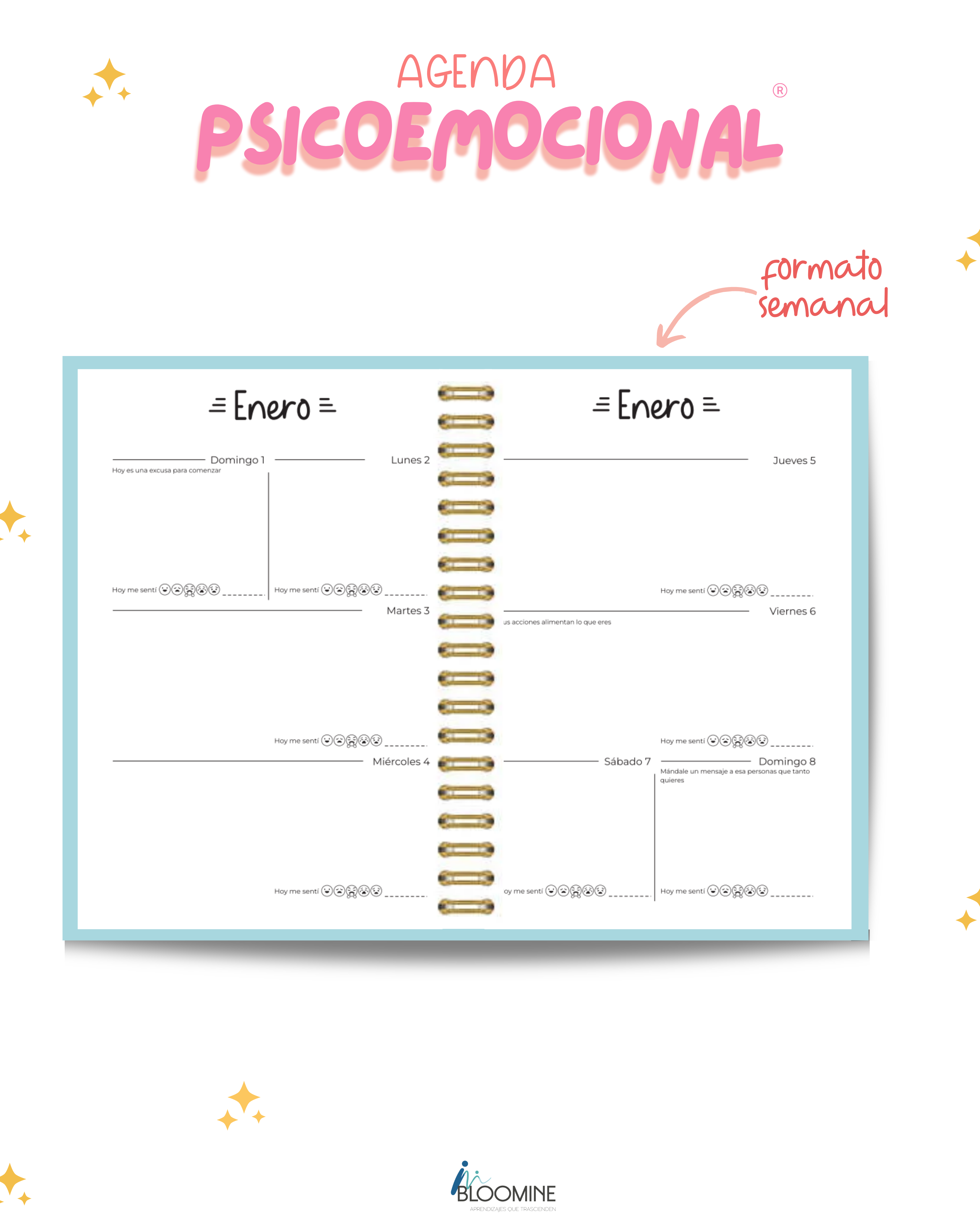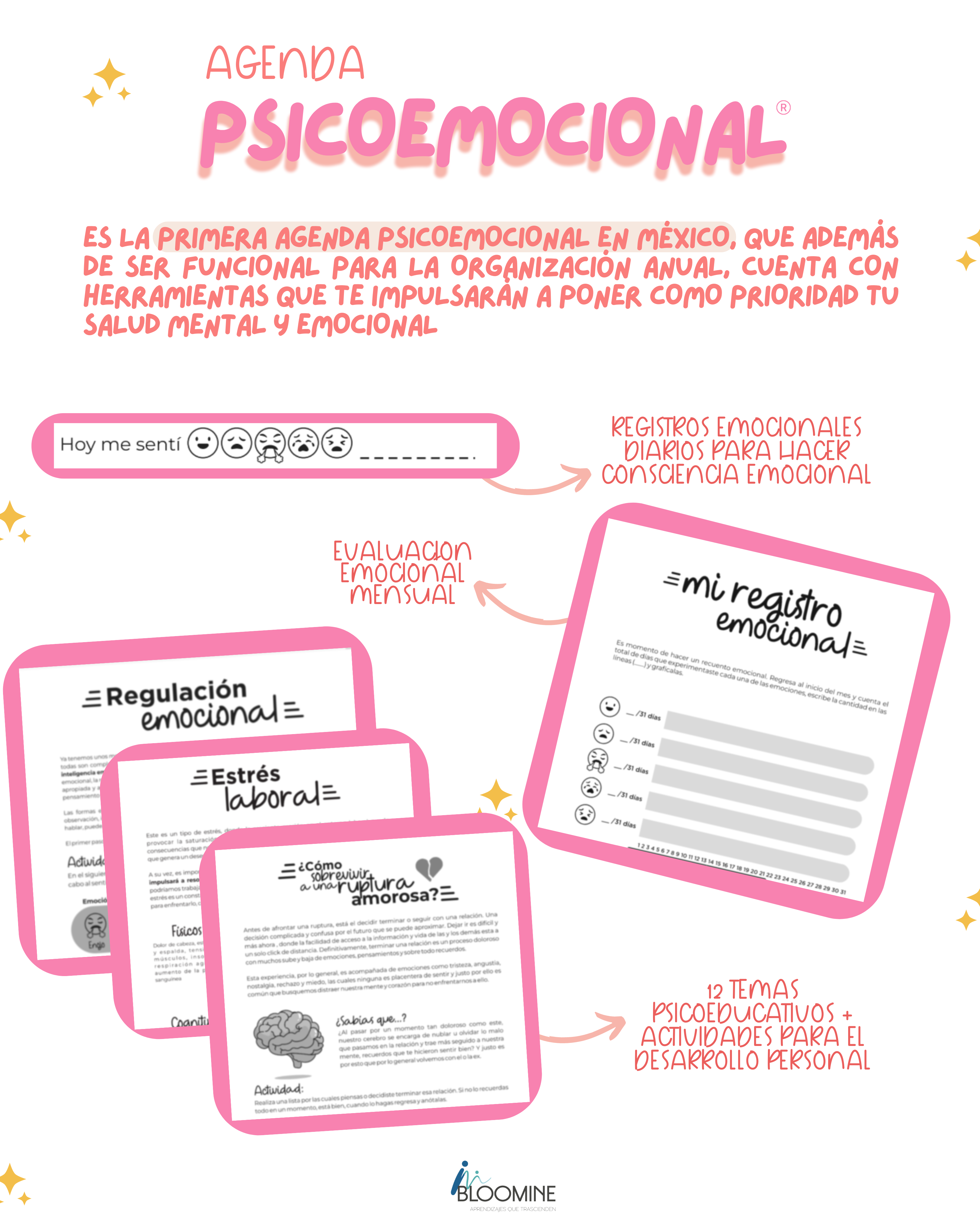 Es la primera Agenda Psicoemocional en México, escrita y diseñada por psicóloga y psicoterapeuta, con la intención de generar una herramienta para el desarrollo de la consciencia emocional.